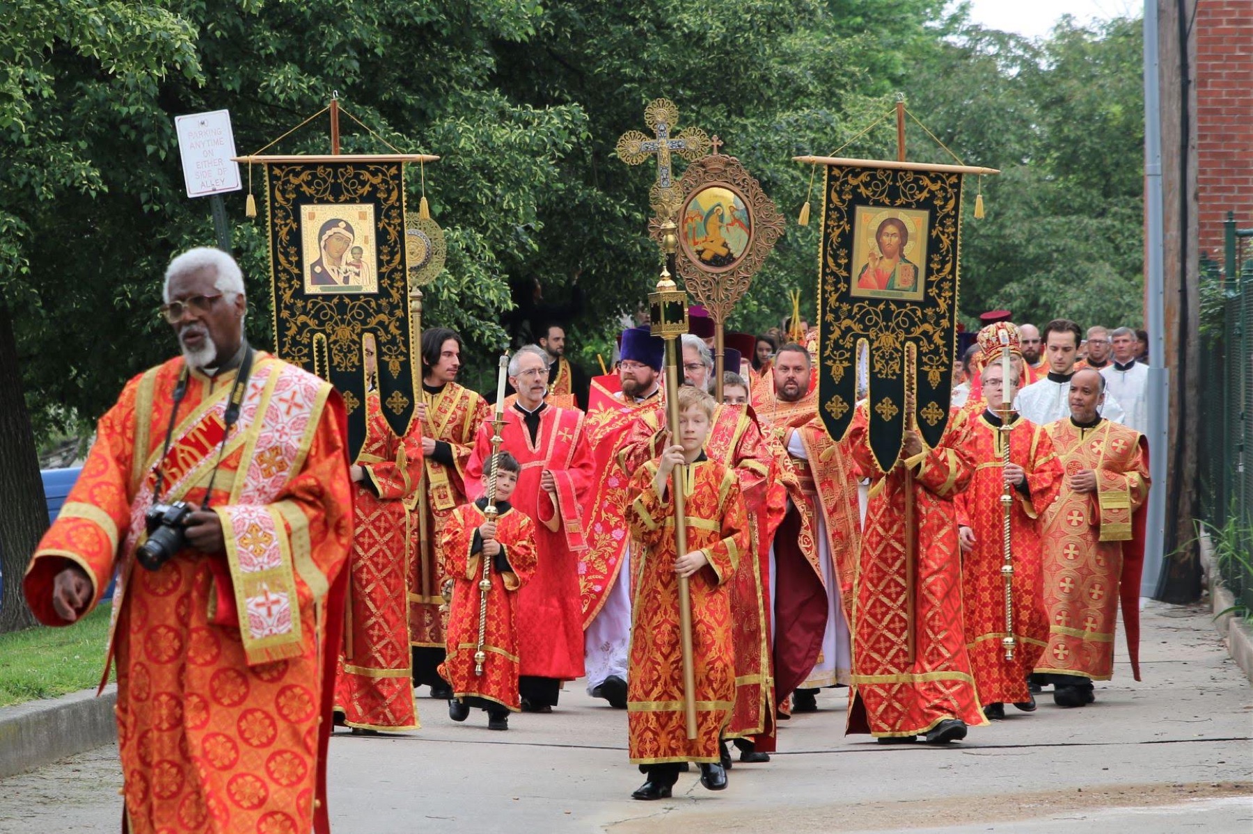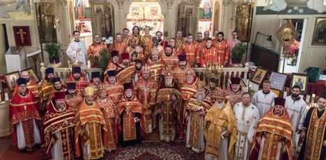 On Bright Saturday, May 4, interim Administrator of the Patriarchal Parishes in the USA Bishop Matthew of Sourozh celebrated Divine Liturgy in Holy Trinity Church for the Annual Bright Saturday Liturgy of the Patriarchal Parishes and on the day of our parish’s Centennial Celebrations. Upon his arrival Bishop Matthew was greeted with flowers by Kay Plaskowitz, Anna Maria Frujinoiu and Maria Khalimovskiy offering greetings in English, Russian and Romanian. Then, our Parish Council President Victor Marinich welcomed His Grace with the traditional bread and salt. After vesting in the center of the church, His Grace led the celebration of the Paschal Divine Liturgy, co-served by 28 priests and five deacons, from the Patriarchal Parishes, ROCOR, OCA and the Antiochian Archdiocese. Before the start of the Liturgy, Bishop Matthew performed the tonsure and ordinations of new readers and subdeacons. At the Little Entrance, several priests received liturgical awards, including Fr. John Vass who was awarded the right to wear the palitsa. After the Eucharistic Canon, Bishop Matthew ordained Subdeacon Artemy Kulikovsky a deacon for All Saints of Russia Church in Pine Bush, NY. After Holy Communion, a procession was held around the block. At the beginning of the procession, Bishop Matthew unveiled a new street sign renaming the street on which the church is situated "Holy Trinity Way." The choir, led by Brian Seraphim Cardell, sang beautifully and prayerfully. Afterwards, Fr. John greeted Bishop Matthew and expressed his gratitude for coming to Baltimore for the paschal celebration as well as the celebration our parish's centennial anniversary. His Grace, in turn, congratulated the clergy on the feast of the bright Resurrection of Christ, as well as on the significant anniversary of the church. The archpastor highlighted the works of the rector, president and members of the parish committees of Holy Trinity Church, who completed major improvements to the interior of the church and who organized a hospitable reception for the clergy, guests and parishioners on this historic day. With the blessing of Patriarch Kirill, Bishop Matthew bestowed jubilee medals in honor of the "100th Anniversary of the Restoration of the Patriarchate of the Russian Orthodox Church" on parish rectors of the Patriarchal Parishes in the USA. Also, in honor of the Centennial, Bishop Matthew bestowed Archpastoral Gramotas to Kay Plaskowitz, Michael Mickel and Arthur-Stephen Lisowsky for their life-long dedication and tireless work for the benefit of the parish. Then, we conducted a joyous and elegant reception in the church hall. The tables were beautifully adorned with fresh flowers and fine linens. The catered reception featured a wide and abundant variety of appetizers, main entrees and beverages. The meal was catered so all of our parishioners could enjoy these once-in-a-lifetime celebrations. More than 170 people attended this very joyous event. We offer our sincere gratitude to the Parish Council and Centennial Committees for their hard work, insight and leadership over the last three years to beautify the church and make the celebration so beautiful, joyous and memorable. Literally, more than half the parish was actively engaged in the many centennial related projects over the last three years. Special thanks to Michael Mickel for coordinating the work of the restorations, to Victor Marinich for his leadership as council president, Andrei Burbelo for his historical research and writing the parish history, and to Tatiana Masiuk and Natalie Burbelo for coordinating the elegant banquet. Everyone, your hard work, generosity, sacrifice and prayers were clearly reflected in this historic celebration. Thank you to all of you. May God bless you and grant you many years! Photo Album: http://holytrinityorthodox.com/albums/ParishAnniversary2019/index.htm |