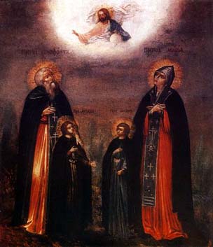 The Monk Xenophontes, his spouse Maria and their sons Arkadios and John, were noted citizens of Constantinople and lived in the V Century. Despite riches and position, they distinguished themselves by their simplicity of soul and goodness of heart. Wishing to give their sons John and Arkadios a more complete education, they sent them off to the Phoenician city of Beirut. Through Divine Providence the ship on which both brothers sailed became ship-wrecked. The brothers were pitched by the waves onto shore at different places. Aggrieved at being separated, the brothers dedicated themselves to God and accepted monasticism. For a long time the parents received no news about their children and presumed them to have perished. Xenophontes, however, now already quite old, maintained firm hope in the Lord and consoled his wife Maria, telling her not to sorrow but to believe that their children were watched over by the Lord. After several years the spouses made pilgrimage to the Holy places and at Jerusalem they met their sons, pursuing asceticsm at different monasteries. The joyful parents gave thanks to the Lord for providently re-uniting the whole family. For the remainder of their lives, the monastics Xenophontes and Maria dedicated themselves to God and accepted monasticism. The Monks Arkadios and John, having taken leave of their parents, went out into the wilderness, where after long ascetic toil they were glorified by gifts of wonderworking and perspicacity. The monastic elders Xenophontes and Maria, having pursued asceticism in silence and strict fasting, also received of God the gift of wonderworking.