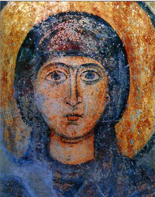 But she hid herself away in Byzantium. Here Saint Adrian appeared to her in a